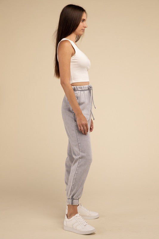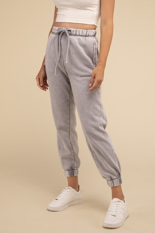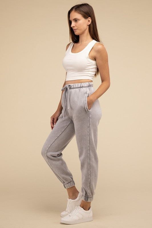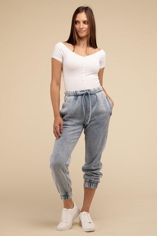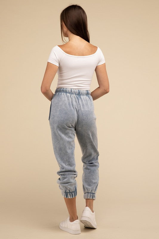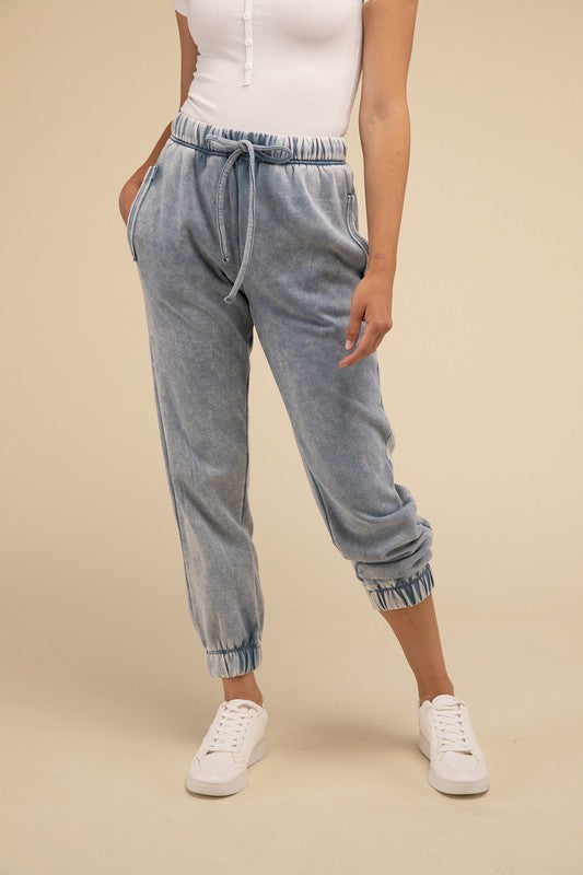 The Acid Wash Fleece Sweatpants with Pockets are a cozy and stylish choice for lounging or casual outings. Made from soft fleece fabric with an acid wash finish, they offer both comfort and trendy appeal. The drawstring elastic waist ensures a comfortable fit, while the pockets add functionality.