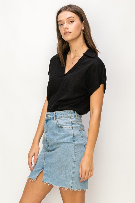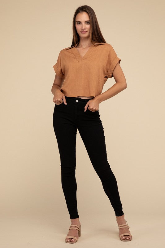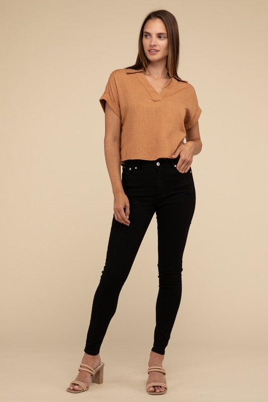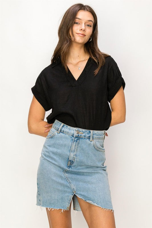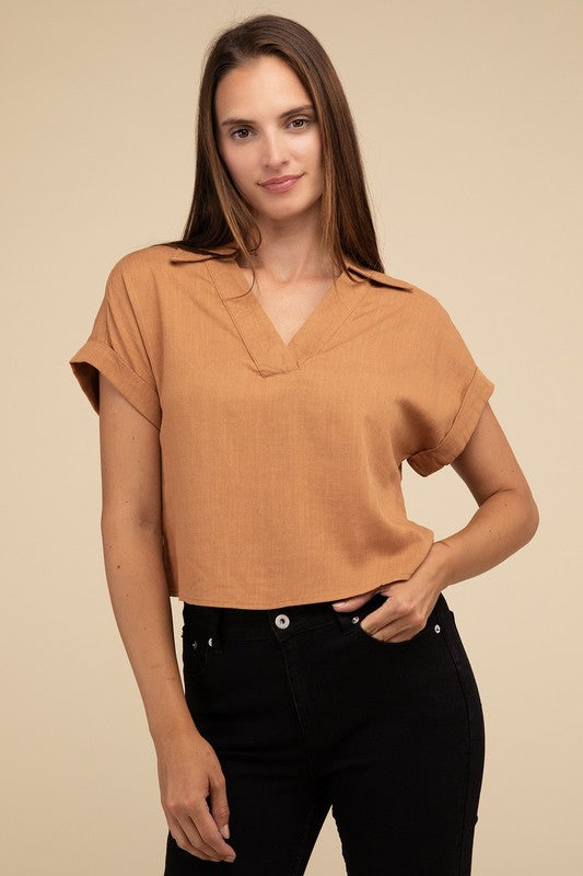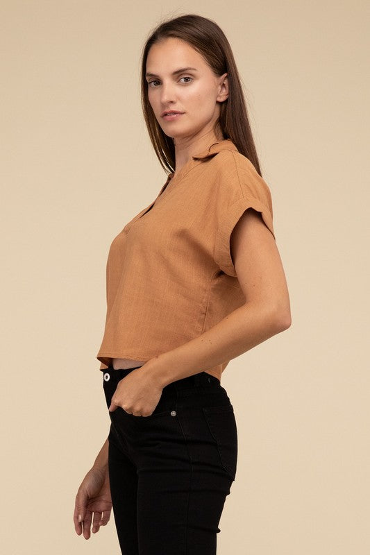 Always a Delight Short Sleeve Linen Top
