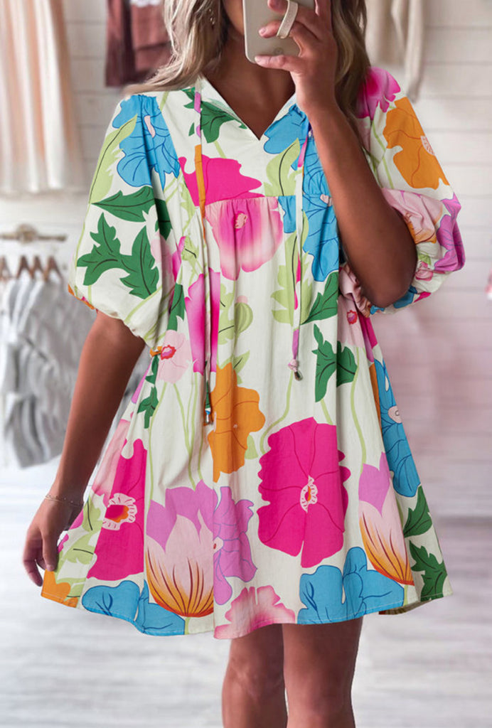 Introducing the Bora Bora Dress: the perfect blend of playful and chic. With a split neck and bubble sleeves, this babydoll style dress will make you stand out in any crowd. The bold florals add a touch of whimsy to your wardrobe. Embrace your unique style with this must-have dress! Oversized fit.