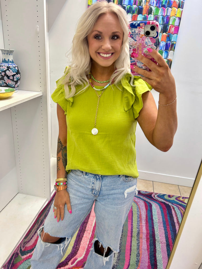 Effortlessly elevate your style with our Cotton Top Ruffle Blouse! Made from 100% cotton, this blouse features double ruffle sleeves that add a touch of elegance to any outfit. Simple yet chic, dress her up with all the fun accessories.