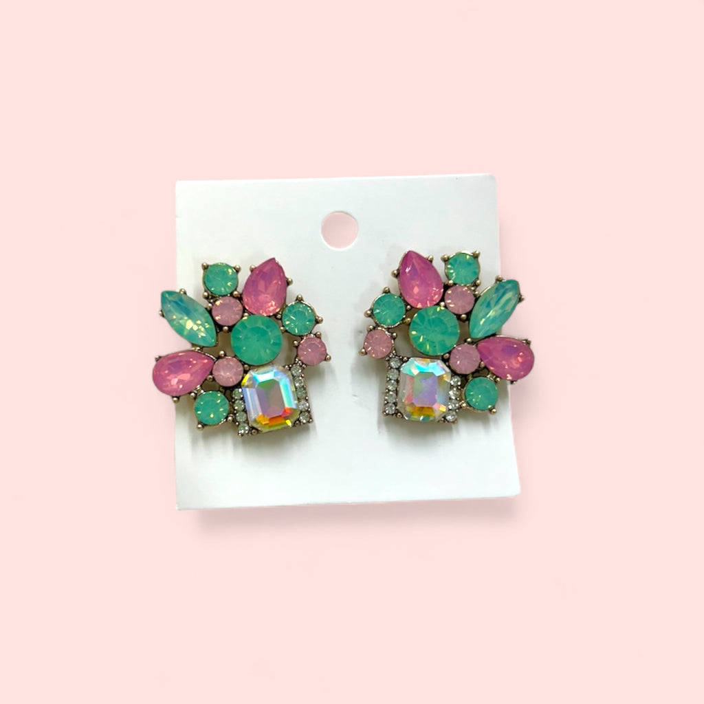 Introducing the Gem Fling Earrings, a perfect combination of pink and teal gems accented with sparkling rhinestones. These classic earrings will add a pop of color to any outfit, making you stand out and feel confident. Don't miss out on this must-have accessory for the season!