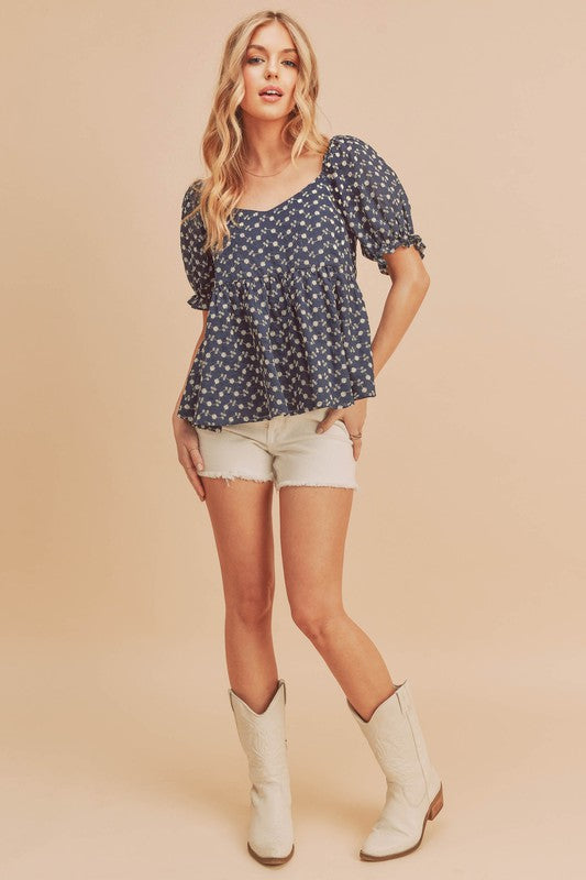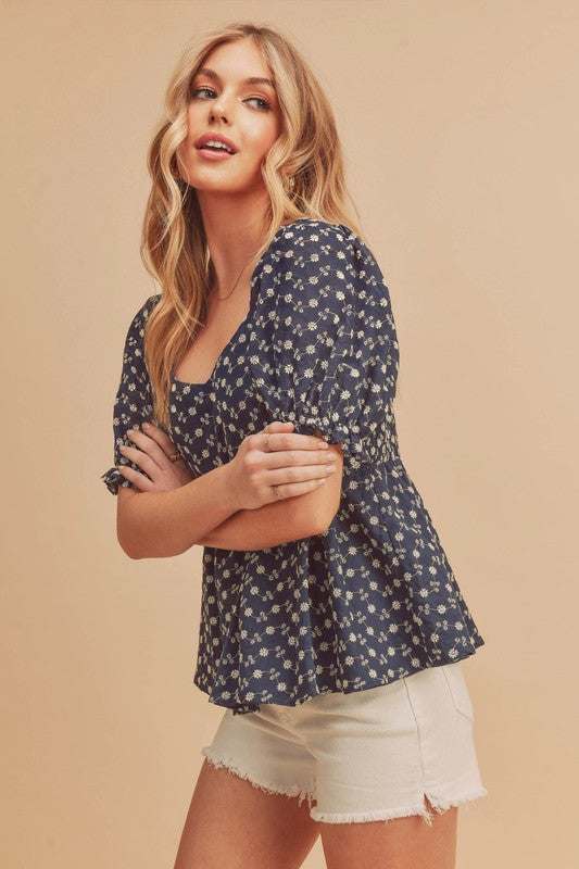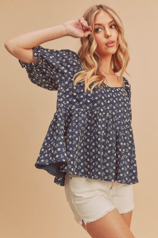 So romantic and forever essential, this embroidered Leia lined top with a sweetheart neckline, babydoll silhouette, puff sleeves is perfect for this season.