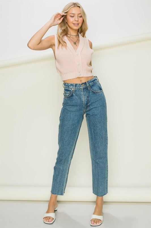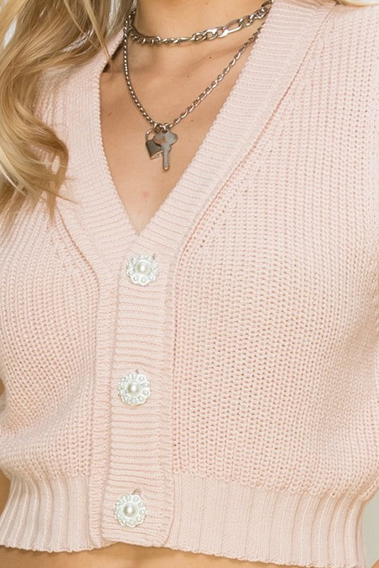 Elevate your style and stay cozy with our Newly Found Love Button-Up Cropped Vest. Crafted from a comfortable cotton-blend knit, this trendy vest is perfect for those chilly evenings. It features a flattering V-neckline and eye-catching pearl button embellishments that add a touch of sophistication to your look. The relaxed fit ensures comfort, and the ribbed knit accents at the neckline and hem provide a stylish finish.