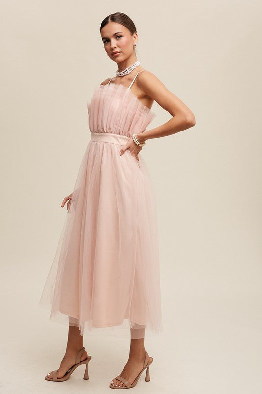 The Paper Bag Frill Tulle Maxi Dress exudes elegance and charm with its thoughtful design details. Featuring a removable and adjustable shoulder strap, it offers versatility in styling options. The zip closure on the back ensures a secure fit, while the raw hem adds a touch of modernity to the classic silhouette. Lined for comfort, this dress is perfect for special occasions or romantic evenings.