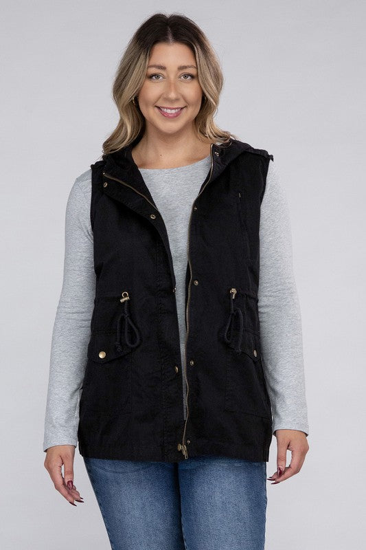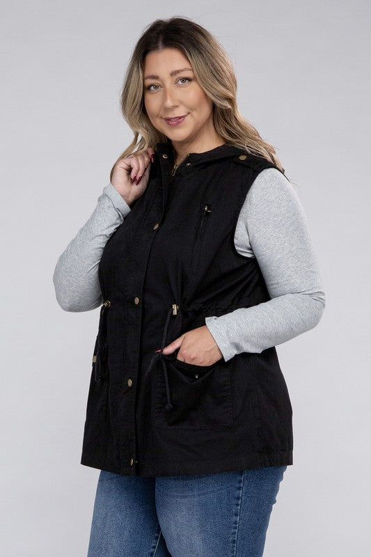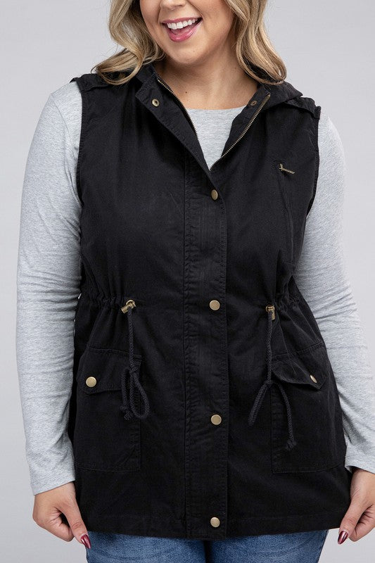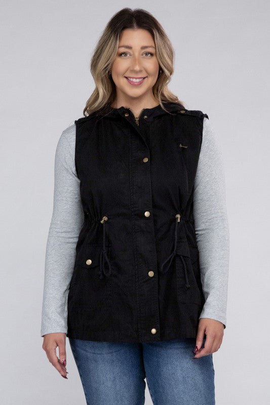 A versatile fashion piece that seamlessly blends style and utility. This vest boasts a convenient zipper and snap-button closure, ensuring ease of wear, while the adjustable drawstring waist provides a personalized, flattering fit. With practical pockets, it's a fashionable yet functional addition to any outfit, making it perfect for both casual and statement looks.