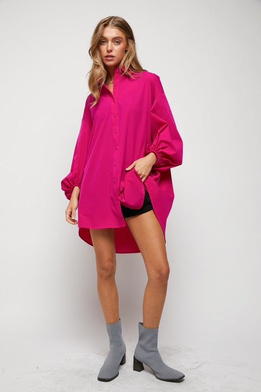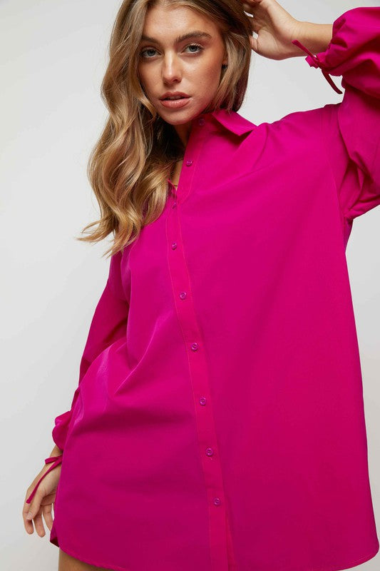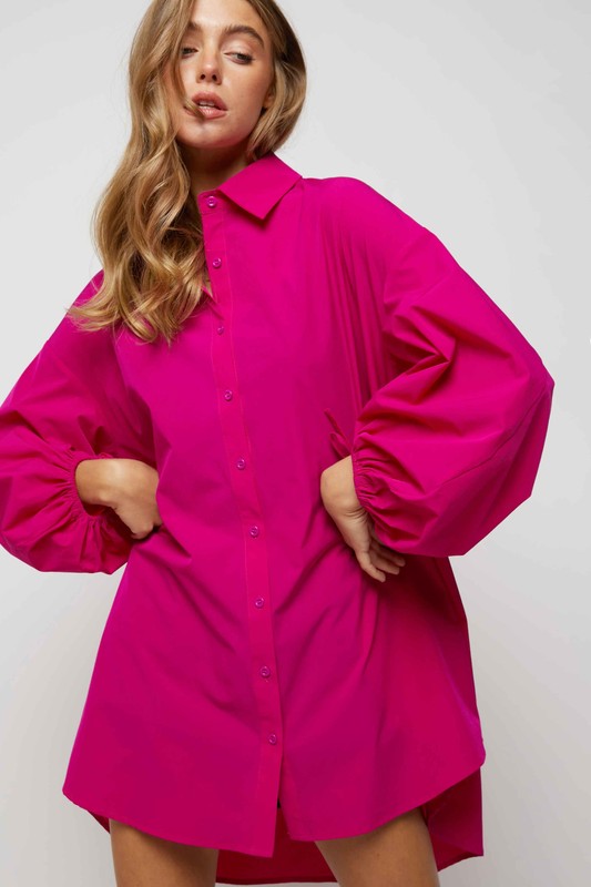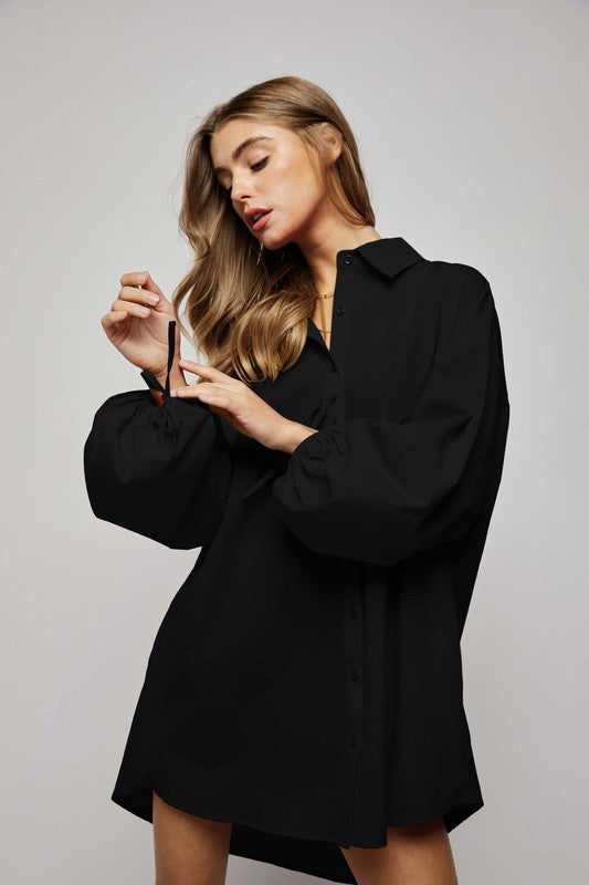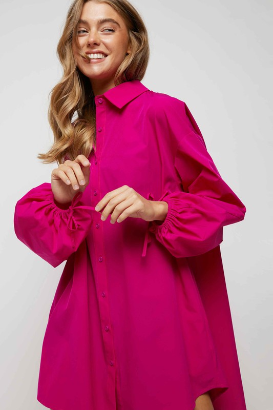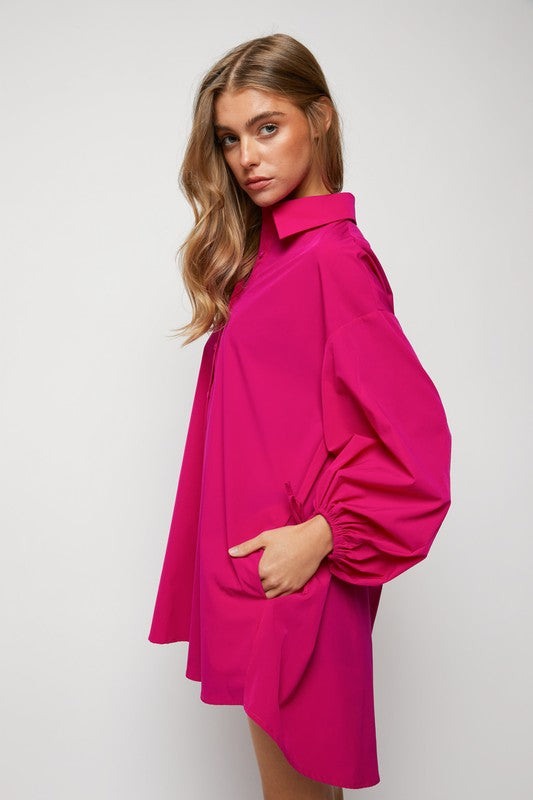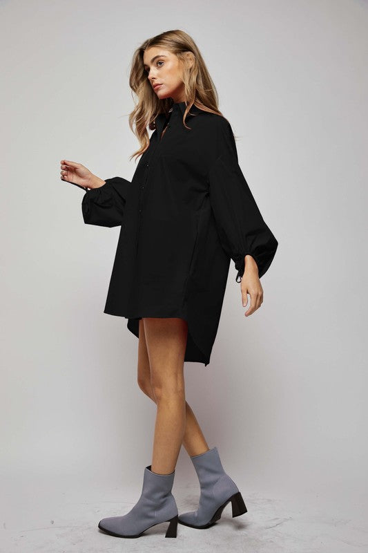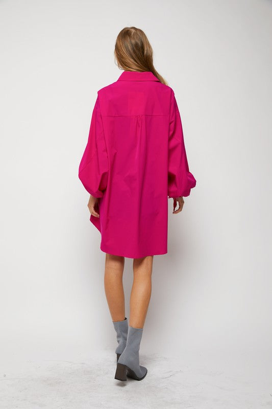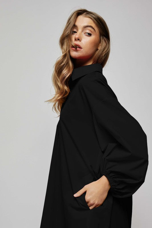Puff sleeves and buttons placket regular fit shirts dress with side pockets