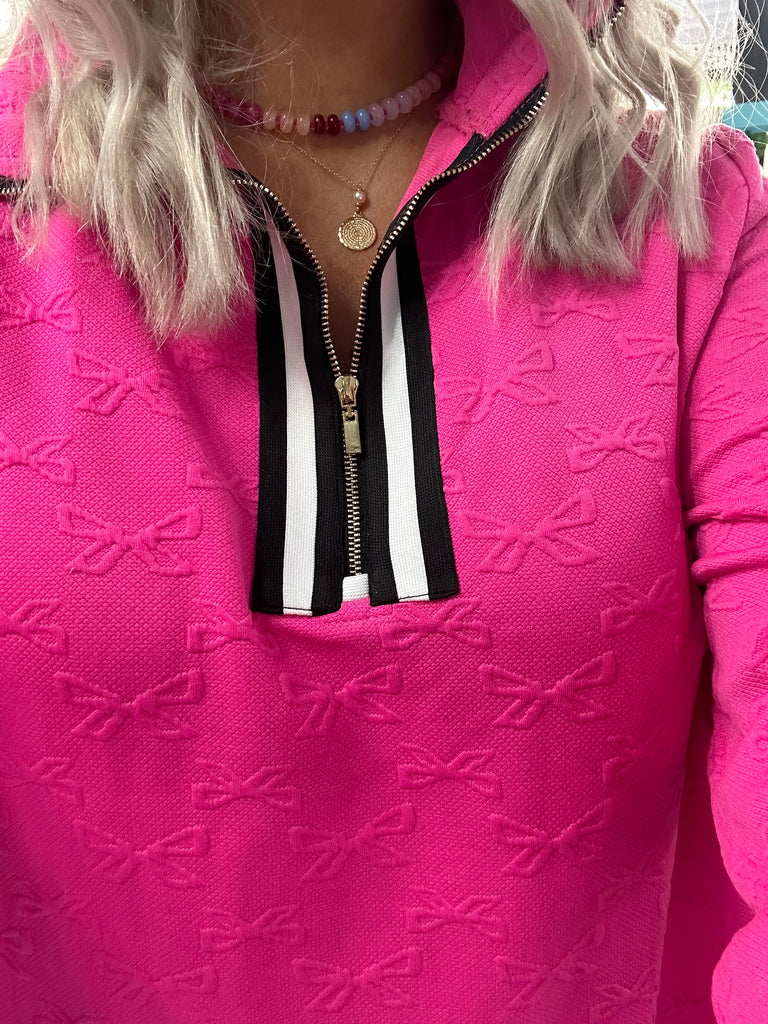 Experience the ultimate in style and comfort with The Belinda Dress in Pink! Featuring a beautiful jacquard fabric and a quarter zipper, this shift mini dress is perfect for any occasion. The longsleeve design and black and white trim details add a touch of sophistication to this must-have dress. Elevate your wardrobe and make a statement with The Belinda Dress in Green