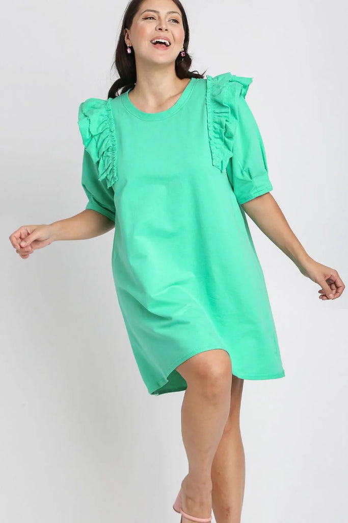 Umgee Full Size French Terry Ruffles Sleeve with Pleats Plus Size